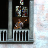 Titled Tent, quartet, bows and elbows, the work originated in 2007. At once a sculpture, a sound piece and a performance, Tent physically contains sound. It is a simple tent…
